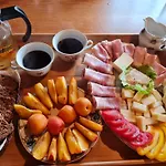 Tourist farm Pr Frjanovc ferielejlighed har værelser med en spiseplads og et opholdsområde.
